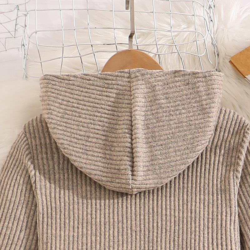 Autumn And Winter New Knit Ribbed Long-sleeve Hooded Zip-up Sweater