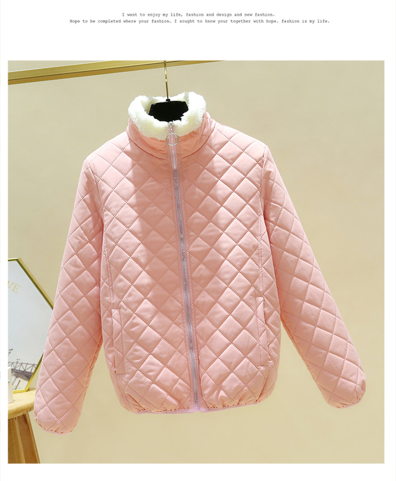 Lightweight Lamb Fleece Warm Stand-collar Casual Loose Small Padded Jacket
