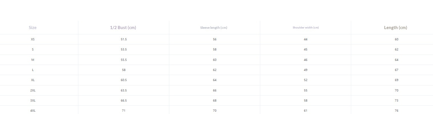 Size: XXS,XS,S,M,L,XL,2XL,3XL,4XL.