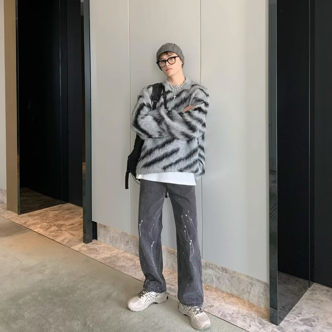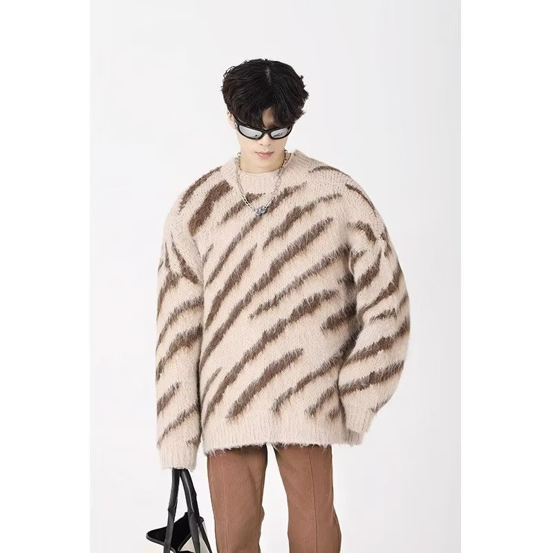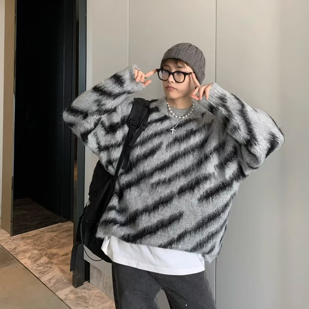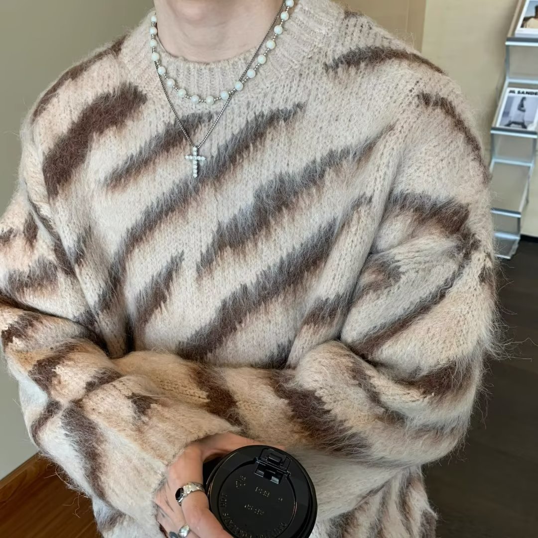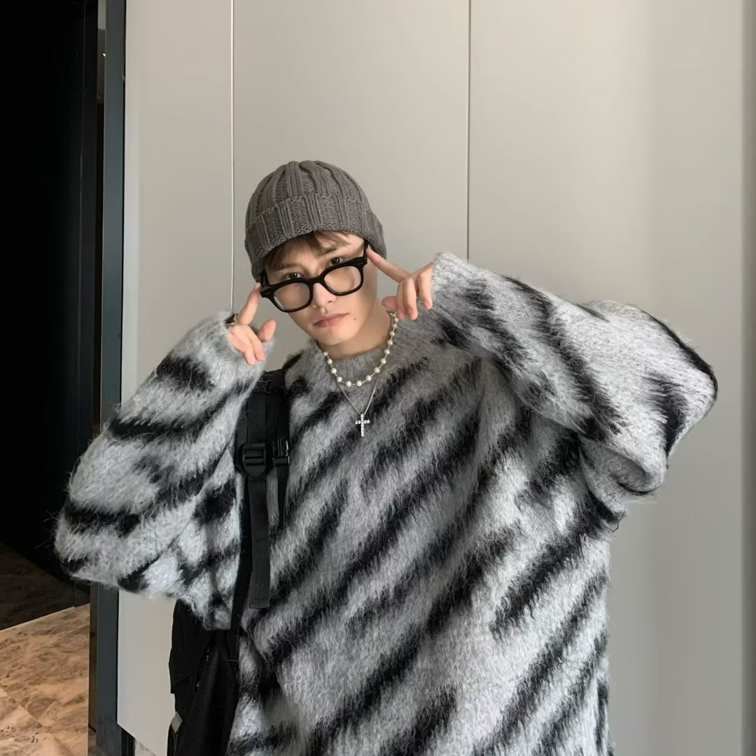 Zebra Stripe Retro Cardigan Men's Loose Knit Sweater